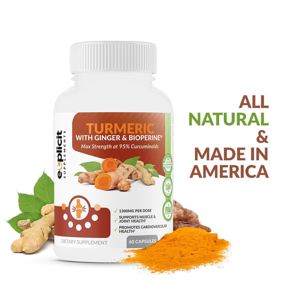Our Premium Turmeric capsules with Ginger supplement, offering a large 1300mg per serving help promote joint function, improved mobility and flexibility in those achey and stiff joints. With the addition of BioPerine, a superior form of black pepper that increases the bioavalability of the turmeric in your body to help with absorption, we offer the best turmeric on the market.